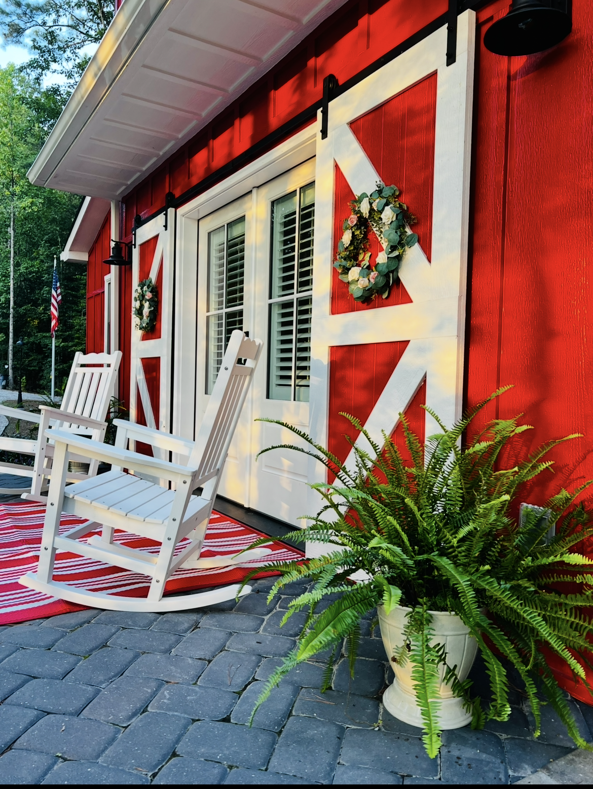 The Tiny Red Barn has the aesthetic of a tiny horse barn but it's actually a comfortable and spacious floor plan (1000 Sq Ft) with a stylish kitchen, an industrial styled bath, serene sleeping areas for 6 guests and washer and dryer. We have chosen finishes and amenities that will provide all the comforts of home. The Tiny Red Barn sits atop what we call