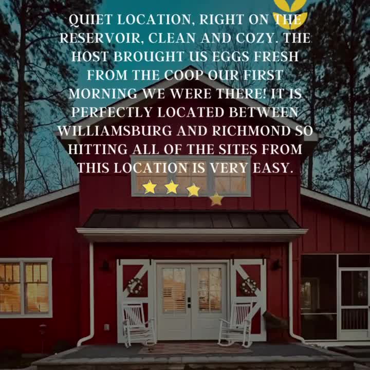 THE TINY RED BARN? Well it’s a labor of love built by us (Class A contractor, Stephen and wife, Virginia) for guests looking to just get out and away from all the crazy. Located in Lanexa, VA (centered between Richmond and Williamsburg) on the Reservoir with water views, wooded trails and sunsets. It’s a Getaway. An Escape. A place to refresh and just be. We feel like we're on vacation every day of the year and look forward to sharing our 26 acres with you.